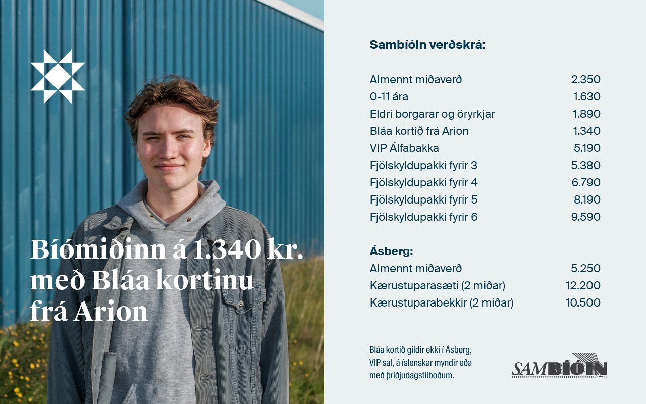 (e-bíófrelsi er eingöngu hægt að nota á www.sambio.is til að kaupa bíómiða og er hlaðið inn á prófíl notanda)